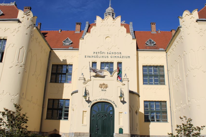 A Völgység tájegység központjának, Bonyhádnak talán legszebb épülete az evangélikus gimnázium. Sárszentlőrincen 1806-ban alapították az evangélikus iskolát, amely a megnövekedett lakosságszám miatt Bonyhádra tette át a székhelyét. 1906-ban, az iskola százéves fennállásának ünnepén határozták el, hogy új iskolát építenek, amely másfél év után, 1908-ban már meg is nyitotta kapuit. Baumgarten Sándor a lechneri magyaros szecesszió stílusát választotta, de ahogy mestere is sokszínű volt, úgy a tanítványa sem maradt le: nem a már „megszokott” téglaszalagos, hanem a felvidéki reneszánsz városok pártázatos oromzatú építészetét vette alapul. A díszítések ezúttal a vakolaton jelennek meg: növényi indák, virágok, szívek láthatók az elegáns épületen. Még a padlásablakok is díszítő funkciójúak.