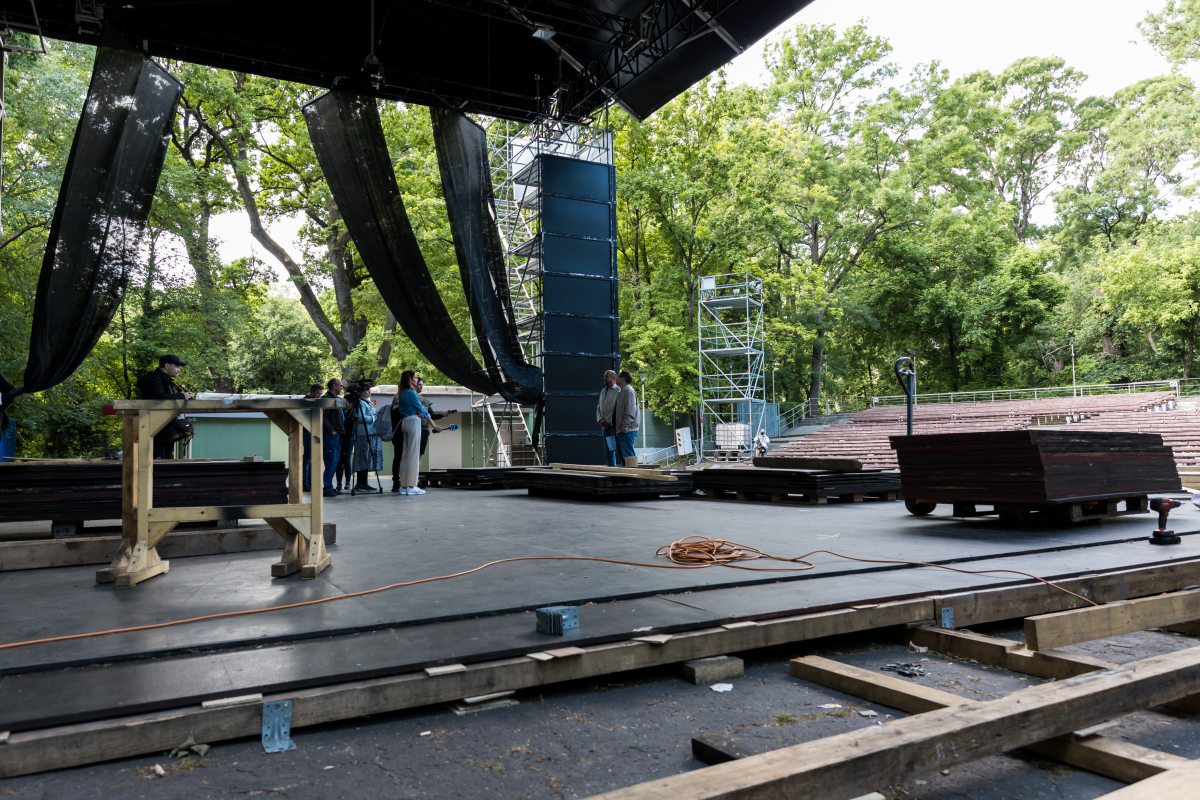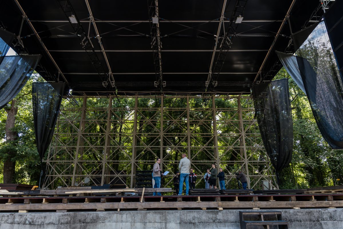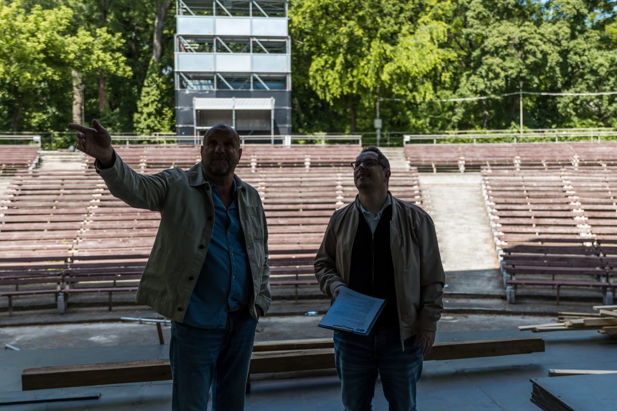 Várkonyi Miklós, a Szegedi Szabadtéri Játékok műszaki vezetője összefoglalta a már lezajlott újszegedi munkafolyamatokat, amelyek idén is tereprendezéssel kezdődtek, majd a színpad melletti, a nézőtéri és a hátsó tornyok felépítése és a produkciók védelmét szolgáló színpadfedés installálása következett. Hamarosan a 2024-ben teljeskörűen felújított színpadi padozat is készen áll, azt követően a munka az elektromos hálózat kiépítésével folytatódik, utoljára pedig a hangtechnikai berendezéseket, a szcenikai világítást szerelik fel. Elárulta, mivel azonos építőcsapatok dolgoznak mindkét helyszínen, a cél az, hogy mire a Szeged Napja ünnepségsorozat végeztével a Szabadtéri Játékok átveheti a Dóm teret, az újszegedi helyszín teljes mértékben készen álljon az évadkezdésre.