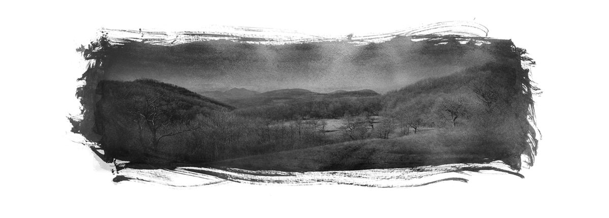 Ha a kiállítóteremben az utat felidéző képtől továbblépünk, csaknem azonos jellegű alkotásokkal találkozunk: tájak fekete-fehérben. A színek hiánya, a sötét és világos tónusaira, illetve a fekete és a fehér kontrasztjára redukált látvány a kompozíciókon elveszti a természetes látás számára ismerős vonásait, és saját valóságának emléke lesz. Vagyis ha a spirituálisból figyeljük a valódinak vélt világot, akkor annak határai megszűnnek. Maga a világ így képpé lesz, elveszti önmagában valóságát, és esztétikai jellé válik. Nem abban az értelemben, hogy valami mögöttes, verbálisan megfogalmazható jelentéssel rendelkezik, hanem úgy, hogy rajta kívülálló, ámde őt magát is magába foglaló szellemi tartományt jelöl. Nem jelentés rejlik mögötte, hanem spirituális állapot. Az út képe az egész kiállítás metaforájaként is értelmezhető.