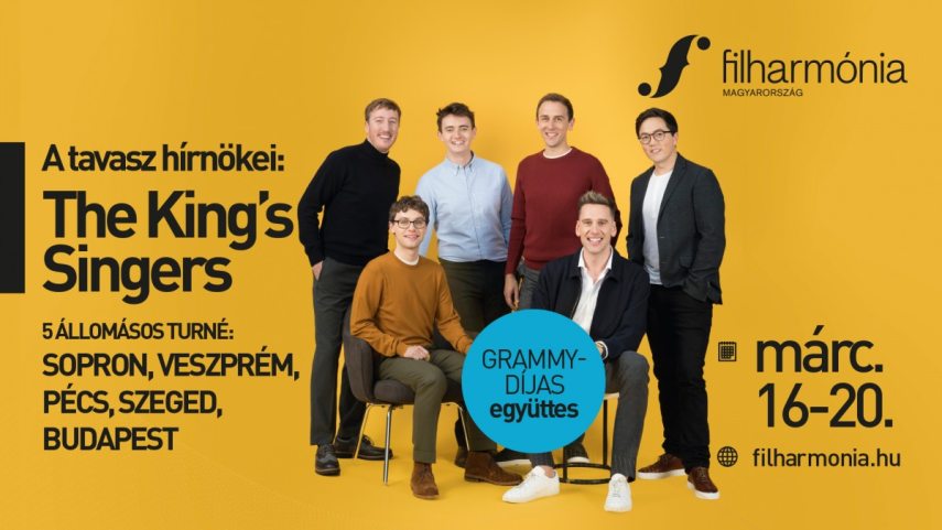 A Filharmónia Magyarország szervezésében rendezik meg a The King’s Singers koncertsorozatát Magyarországon. A formáció március 16. és 20. között látogat el Budapestre, Szegedre, Veszprémbe, Pécsre és Sopronba.
