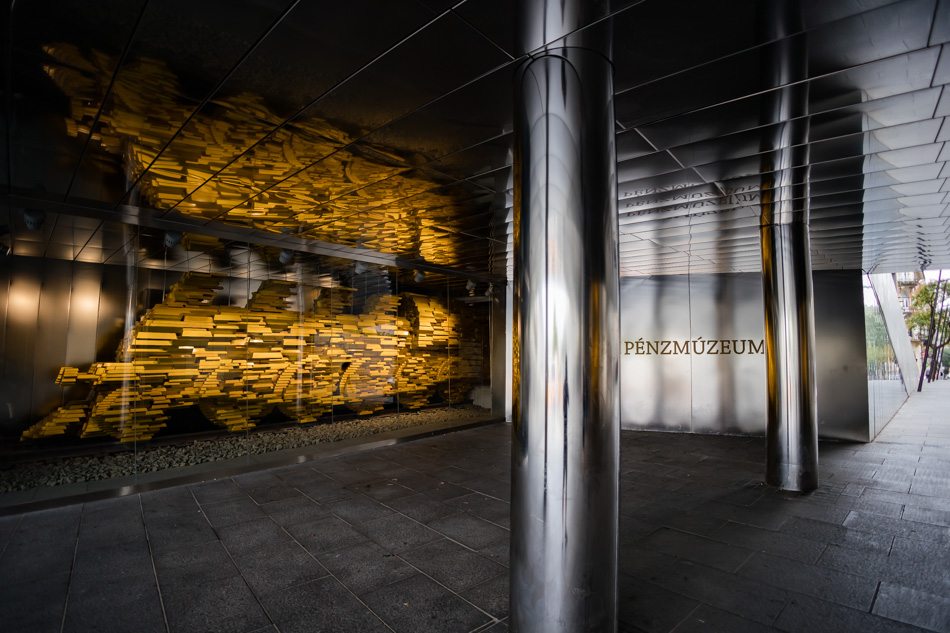 Az utcáról is látható, stilizált formában megjelenő aranyvonat történetét is itt ismerhetjük meg: a II. világháború idején a jegybanki dolgozók harminc tonna aranytömböt és aranypénzt menekítettek ki az ausztriai Spital am Pyhrnbe, amelyet később az amerikai hadsereg hiánytalanul visszaszolgáltatott az országnak. Ez tette lehetővé, hogy a világrekord inflációt produkáló pengőt 1946. augusztus 1-én felválthassa az új pénz, a forint.