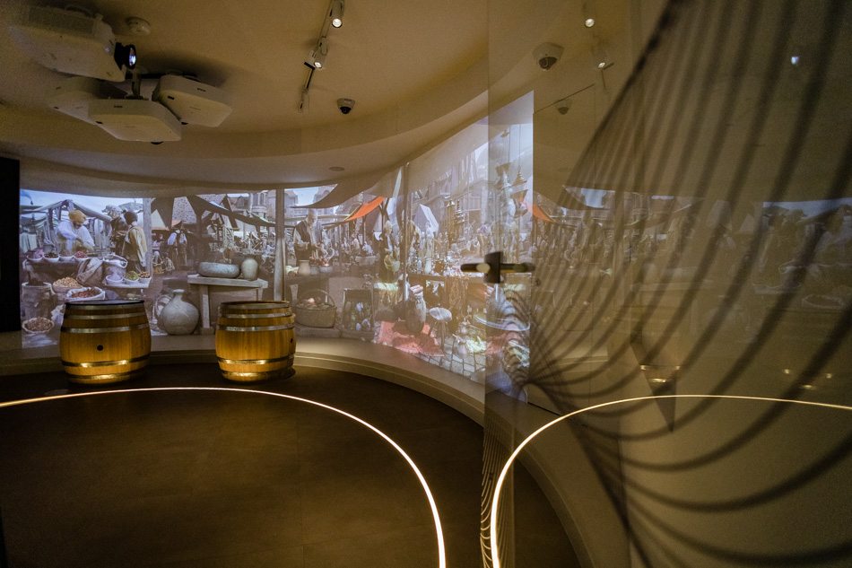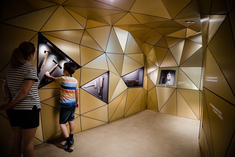 A ruhatár sem szokványos. Egy nagy térképen olyan, az arannyal kapcsolatos, ismert és kevésbé ismert tartalmak jelennek meg, mint hogy jelenleg Kínában van a legtöbb aranybánya, megelőzve az USA-t, Ausztráliát és Oroszországot. Ugyanitt bepillanthatunk az alkímia, azaz aranycsinálás több száz éves történetébe, de még a szekrények is telis-tele vannak háromnyelvű ismertetőkkel. A magyar, angol és kínai nyelv a terminálokon is visszaköszön: ezeken aktiválhatjuk a mágneskártyánkat annak érdekében, hogy a látogatásunk során tallérokat gyűjtögessünk. A bevezető részben néhány, az aranybányászathoz kapcsolódó szerszám – csille, bányászlámpa, csákány – és egy aprócska aranyrög is helyet kapott.