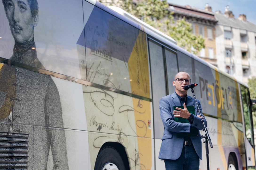 – Hogy ne csak azok tanulmányozhassák, élvezhessék a költőóriás gazdag életútját, akik a Petőfi Irodalmi Múzeumba ellátogatnak, hanem azok is, akik valamilyen okból nem tudnak eljutni oda. Ezért a Petőfi-busz a következő másfél évben minimum 200 településre fog elmenni – mondta el Demeter Szilárd, a Petőfi Irodalmi Múzeum főigazgatója a Magyar Nemzeti Múzeum előtt megtartott, az „Átröpűlök hosszában hazámon” című utazókiállítás sajtótájékoztatóján.
