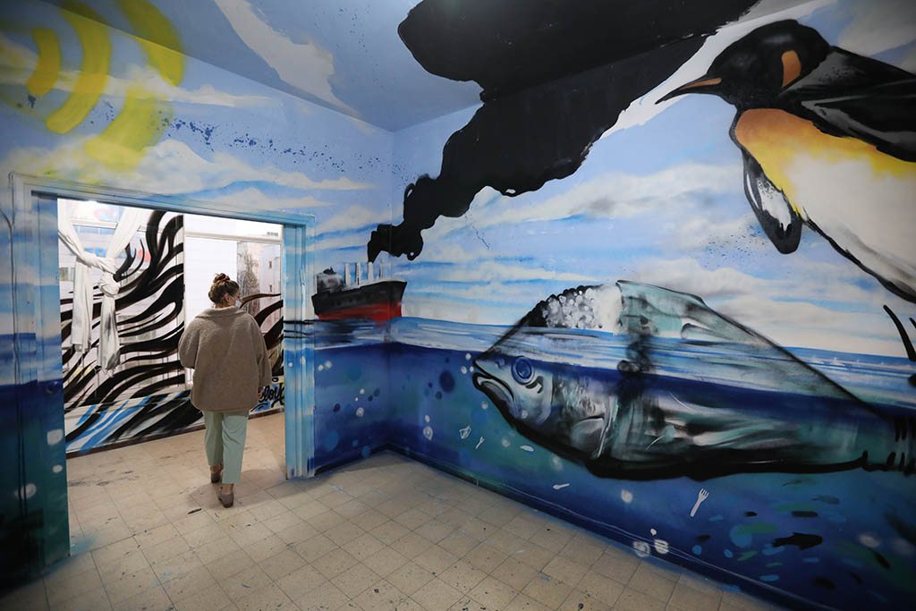 Utcai művészek, festők, illusztrátorok, grafikusok, dekortervezők, installációs művészek alkotásai láthatók abban a pop-up múzeumban, amelyet izraeli művészek egy csoportja két lakóépületben alakított ki Tel-Avivban.