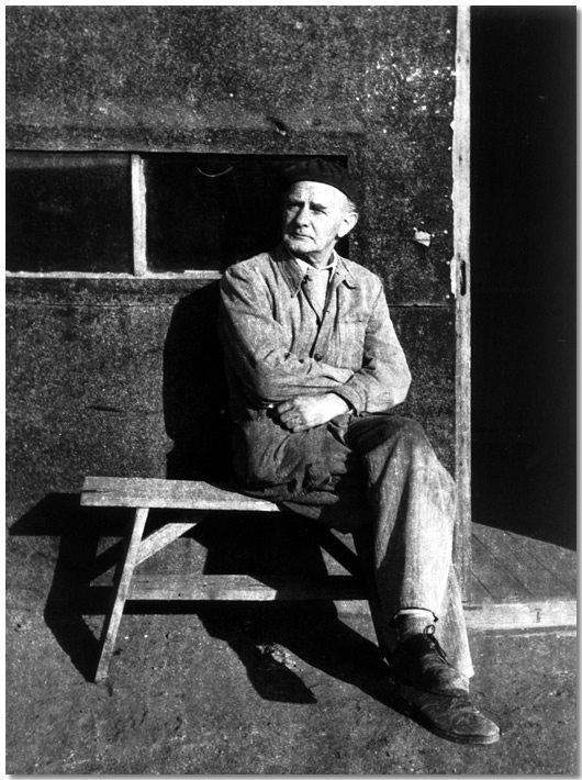 „Meditációs objektem” tárgya – ahogyan Hamvas mondaná – most az a kép, amelyen, talán Tiszapalkonyán, talán Bokodon egy padon ül, feltehetőleg a raktár előtt, amelyben dolgozott. Feltűnő vonásainak nemessége, az arcán ülő dac, öntudat. Száműzött fejedelem ül így, ilyen „csak azért is”-sel a tartásában. Szókratészi erőt érezni benne, a száműzöttsors önkéntességét. A rendíthetetlen hitet a jézusi szavakban: