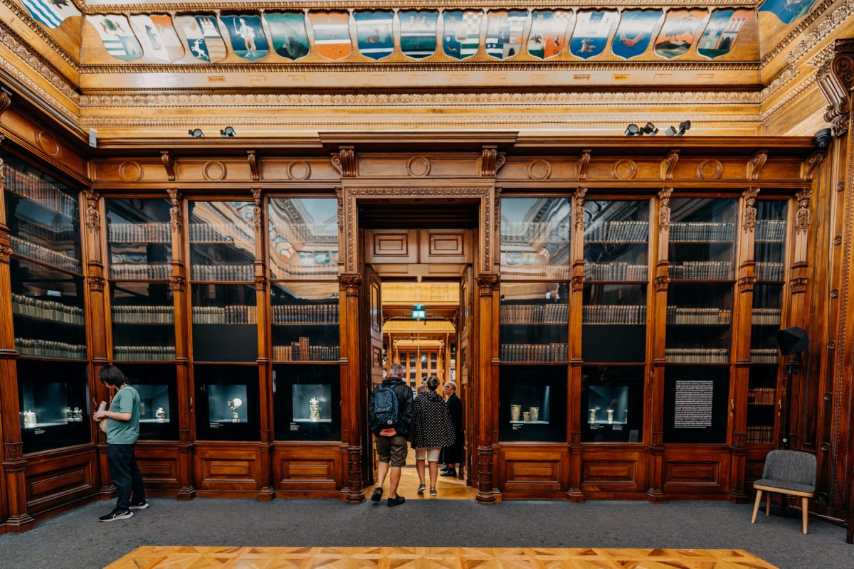 Körben, az üveges tárlókban a Nemzeti Casino könyveit őrzik. A Pesti Casinót Széchenyi István alapította 1827-ben, hogy „eszes, értelmes férfiak a társasági rendek mindenik osztályából egymással vagy barátságos beszélgetés végett találkozzanak, vagy többféle politikai ujságokat, mint amilyeneket rendszerént a kávéházakban találni lehet, s hasznos gazdasági, tudományos, művészi hónapos írásokat olvassanak. Magokat pedig üres óráikban illendően mulathassák.” A könyvgyűjtemény a Magyar Tudományos Akadémia könyvtári állományának része. A kötetek mellett a Herzog-gyűjtemény darabjai gazdagítják a polcokat.