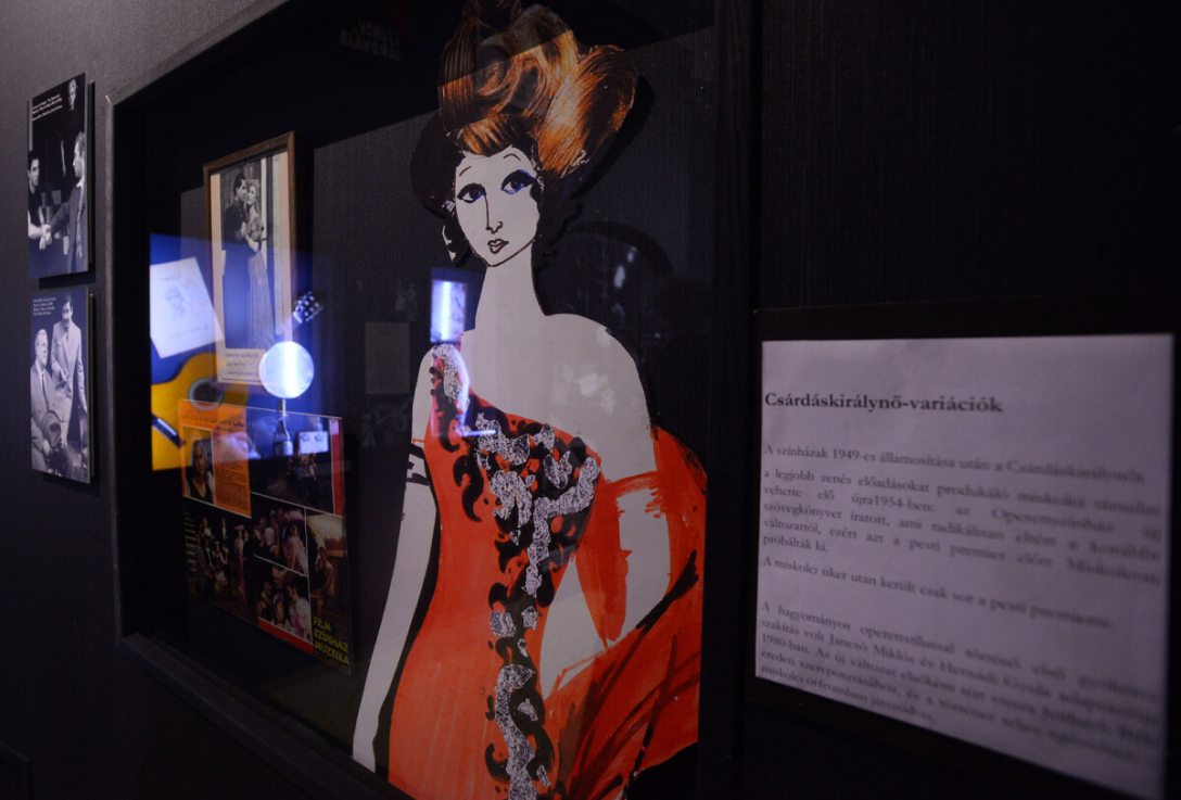 A kiállításon megtekinthető a színház legrégibb jelmeze: Kecskeméti Irmáé, amelyet a századforduló táján egy népszínműben viselt. A jelmezeknek a díszletekhez – például a háttér által ábrázolt falusi házhoz, palotához, erdőhöz vagy börtönhöz hasonlóan –, sokféle történet hangulatához kellett illeszkedniük, és nem az egyes színdarabokhoz készültek. A színészeket az államosításig arra kötelezték, hogy saját pénzükből varrassanak jelmezt maguknak. A Csárdáskirálynő A lyányok, a lyányok… című dalának „Új műsorhoz új férfi kell” kezdetű sorát általában félreértik: a színésznők ledérségét hallják ki belőle, pedig valójában erre a keserves helyzetre utal. Ha nem akadt támogató, nem volt pénz a következő ruha elkészítésére, és azt a karrier bánhatta. Mezey Máriától fenn is maradtak olyan, miskolci időszakában írt levelek, amelyekben jelmezpénzért könyörög az apjának.