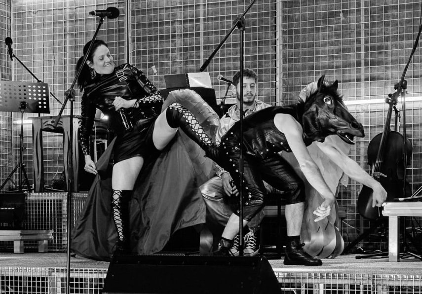 Hozzátette: az előadással kapcsolatban hirtelen jött az ötlet, hogy egy indusztriális metált játszó német zenekar dalai is kerüljenek bele az előadásba, és meg is találták azokat, amelyek szervesen illeszkednek a szöveghez, a hangulathoz. A színészek hatalmas lelkesedéssel fogadták a kihívást, rengeteg munkával tanulták be a dalokat.
