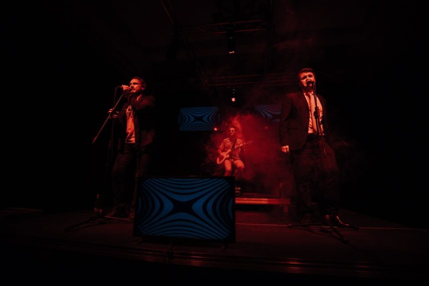 Sebestyén Aba Áronja izzóbb, szenvedélyesebb, bár igazságkeresésében néha kimondottan tanácstalan, sutaságát magabiztos kiállással leplezi, amit képviselőként a politika hátsó szobáiban szedett fel. Cári Tibor zenéje – Szász Csaba előadásában – helyenként feszültséget keltő aláfestésként csavar egyet a történet fájdalmas szorításán, máskor pedig meghatóan szép imádságként simul érzékenyen a prózai szövetbe. A rockkoncert lüktetése jót tesz a történet road movie-t idéző sodrásának, a kivetítőkön felvillanó arcok, grafikus elemek pedig megtörik az előadás statikusságát, bár meggyőződésem, hogy a szöveg, a zene és a színészi játék ereje enélkül is magával ragadó produkciót hozna létre.
