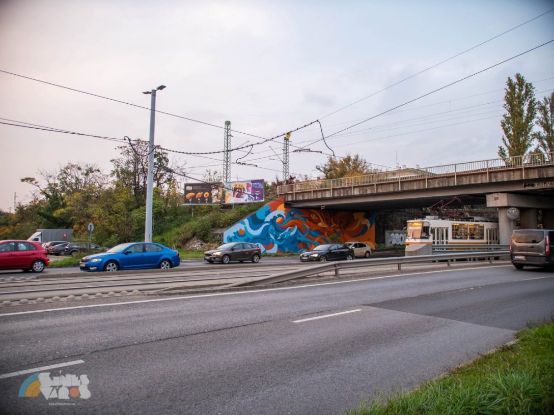 A híd szemközti, Szerémi út 1. szám alatti másik pillérjének megfestése Váczy Enikő vizuális alkotó nevéhez fűződik.