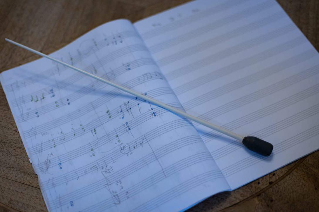 | Az első előtti pálcámat kínai evőpálcikából kreáltam hajgumi segítségével. Az igazi első karmesteri pálcát Drucker Pétertől kaptam. Mára mindkettőt nyugdíjaztam, és kitüntetett helyük van a szobámban. |