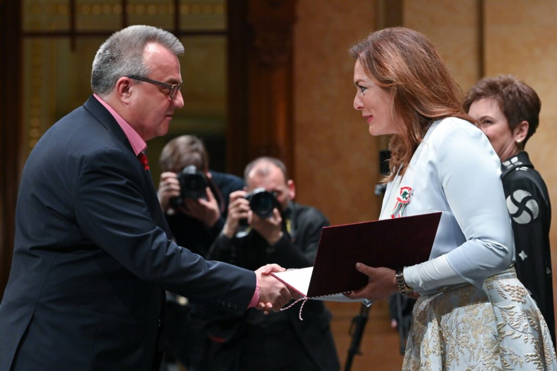 Az első képen Sárik Péter veszi át a kitüntetést. Fotó: Buzák Noémi / MTVA