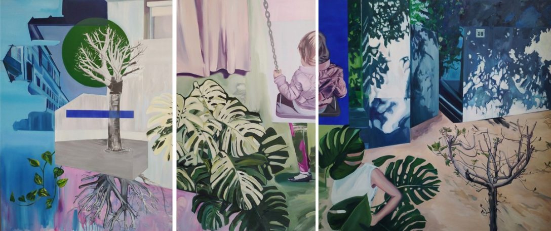 Ezek a festménykompozíciók is egymásra vetített képsíkokból állnak össze, amelyek átlátszó hártyaként húzódnak egymás felett. Motívumaik áttűnnek egymáson, és így alkotnak egyre mélyebb és mélyebb, rétegzett tereket és síkokat. Sajátos színviláguk sokszor elrugaszkodik a valóságtól. Ennek az a célja, hogy a néző valóban merjen távolabb nézni, és továbbgondolni, akár magára vonatkoztatni a látottakat.