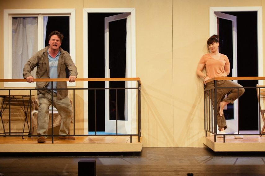 A romantikus komédiáknak megfelelően itt is már az első pillanatban valószínűsítheti a néző, mi lesz a történet vége, de azt, ahogyan addig eljutunk, Wil Calhoun nagyon szellemesen és egyedien mutatja meg. Ötvös András játssza Alvint, a lakásába bezárkózott írót, Péter Kata pedig a szomszédjába költöző Karent, aki az ENSZ-nél dolgozik. A történetet a speciális élethelyzet, az egymás melletti erkélyek, a két főhős eltérő személyisége és a humor működtetik.