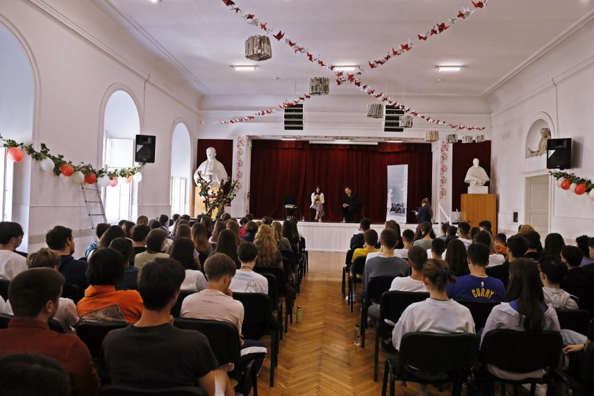 Az órán részt vett Balázs Imre József irodalomtörténész is, aki az intézményben tanult egykor, mint most a lányai, akik szintén jelen voltak. Imre maga is a Karaván vendége lesz a Csíkszeredai Könyvvásáron.