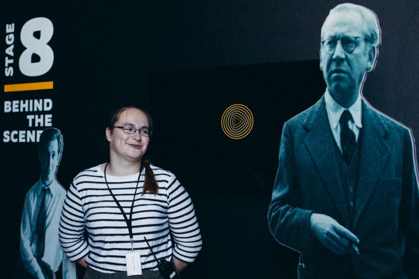 Ezt a folyamatot animátor segítségével ismertük meg a Filmgyártás-élménytúra program termeiben, amelyet egy fiktív stáb tagjaiként jártunk be. Online „találkoztunk” az ötletgazda-rendezővel, filmes szakkifejezéseket tanultunk – concept art, storyboard, call sheet, location manager –, majd bepillantottunk a pénzügyi, koordinációs, produkciós, művészi osztályok munkájába. A költségvetési táblázatot böngészve az is kiderült, hogy miért olyan drága mulatság egy film, de arra is fény derül, hogy miért mászkál egy fekete táskás, titokzatos ember minden forgatáson.