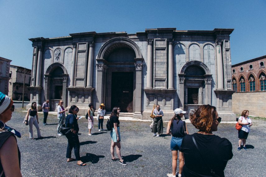 A Borgiák sorozattól megvett díszletvárosban könnyen ráismerhettünk a Szent Péter-bazilika torzójára, a pápa megválasztását jelző kéményre, de a római Colosseum egy darabkáját is be lehetett járni. Bár a város egészen valóságosnak tűnt, valójában szinte csak homlokzatokat láttunk, amelyek deszkából, hungarocellből, plexiüvegből épültek fel. Még a börtöncella rácsa sem fémből, hanem fából készült.