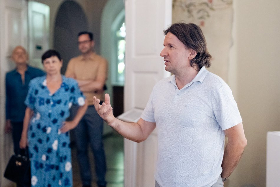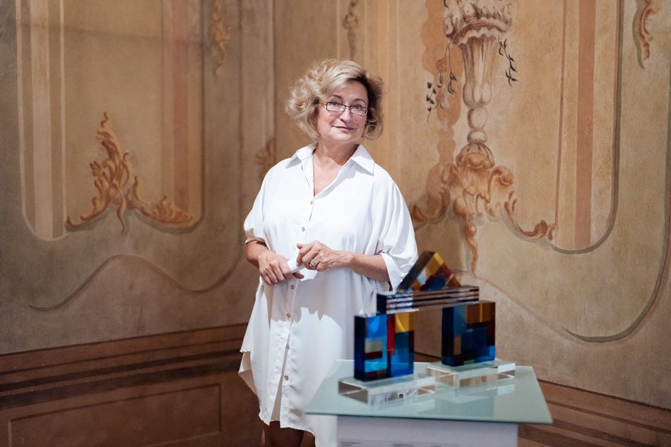 Már a helyszín is különleges. A barokk De la Motte–Beer-palota megmentett, felújított freskói, hatalmas üvegablakai különleges hátteret nyújtanak a Koós Ágnes kurátor által válogatott kortárs, modern üveg műtárgyaknak, amelyek jelentős részét maga a kiállítótér inspirálta.