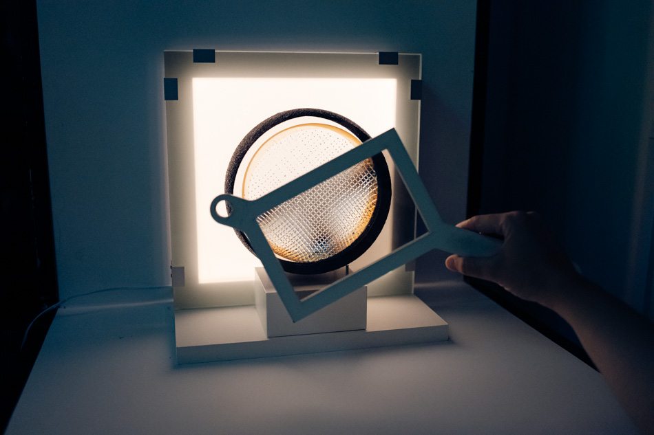 Az üvegművészet jövőjébe engednek bepillantást Telegdi Balázs Through the scope I–II. címeket viselő alkotásai. A fiatal alkotó az üvegen belüli, szabad szemmel nem látható feszültségeit mutatja meg polaroidlapok segítségével.