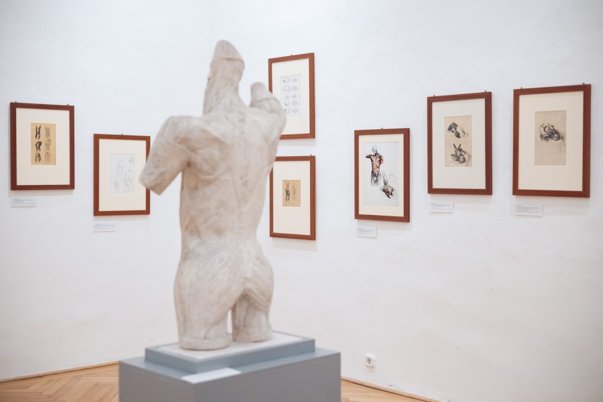 A Barcsay-terem másik két terében a művész pedagógiai öröksége válik láthatóvá. Ez szorosan összefonódik Művészeti anatómia című kötetével, amely generációk számára vált nélkülözhetetlen kézikönyvvé. Ezek a grafikái Gottfried Bammes, a drezdai főiskola professzorának anatómiai rajzai mellett szerepelnek, így még inkább láthatóvá válik: Barcsay különlegességét az jelentette, hogy a csont- és izomtanulmányokat nem csupán tudományos pontossággal ábrázolja, hanem művészi érzékenységgel, a test ritmusát és szépségét is közvetítve. Barcsay könyve a művész számára kínál eszközt a test érzéki és kifejező ábrázolásához, míg Bammes tankönyve a pontos anatómiai felépítést rögzíti. Együtt szemlélve őket világosan látszik, hogy a 20. századi európai anatómiaoktatásban e két pólus – a tudományos alaposság és a művészi interpretáció – egyaránt nélkülözhetetlen volt.