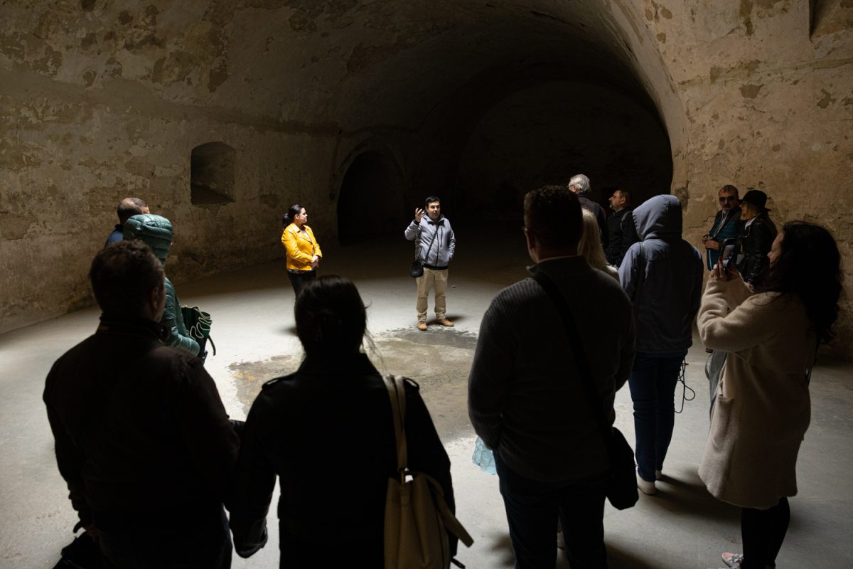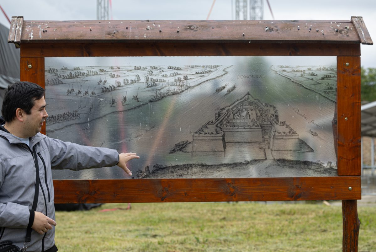 „A dicsőséges szovjet néphadsereg 1968-1989 között tanyázott az erőd falai között, katonai raktár és laktanya volt, ezért az állapota bőven hagy kívánnivalót maga után” – meséli a bejárat előtt Andrej Ozimy, a Komáromi Központi Erőd igazgatója. Mégpedig ízes magyarsággal, holott szlovák az anyanyelve. Azért tanulta meg a nyelvünket, mégpedig gyönyörűen, mert imádja a várat, a várost, és talán a magyarokat is szereti. Ezt a háttér-információt Kiss Réka árulta el nagy tudású kalauzunkról. Réka Észak-Komárom város önkormányzata és az Egressy Béni Városi Művelődési Központ által szervezett sajtóúton karolta fel az anyaországból, Erdélyből, Szlovéniából érkező magyar újságírókat.