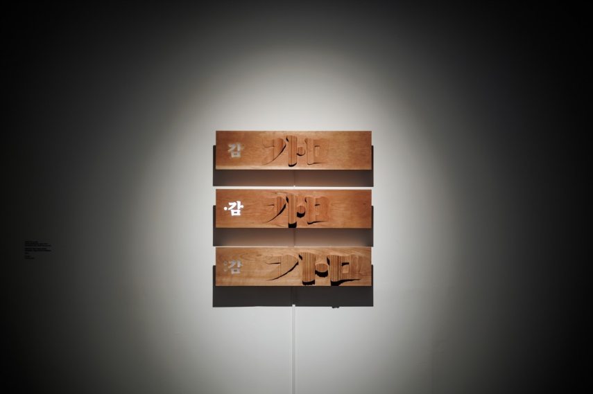 a dizájn felől értékeli azt 23 dél-koreai kortárs művész értelmezésében. Az alkotások a hangul esztétikai jelentőségét térképezik fel az alkalmazott művészetben, bútorokon, plakátokon, ruhákon köszön vissza a koreai betűkészlet és annak gondolatisága.