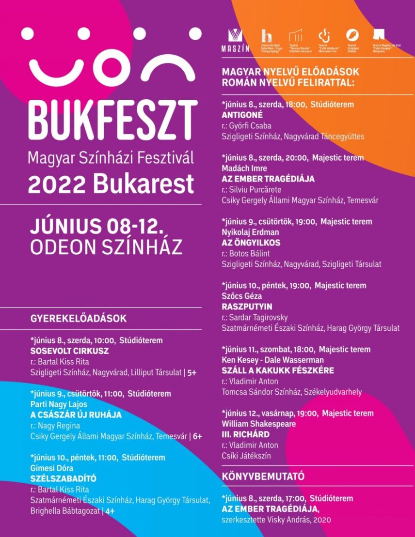 A Bukfeszt június 8. és 12. között lesz a bukaresti belvárosi Odeon Színház nagytermében és stúdiójában. A Román Színházi Szövetség (UNITER) székhelyén megtartott sajtótájékoztatón Balázs Attila, a MASZÍN elnöke ismertette a 2016-ban alakult egyesületet, amely Erdélyben szokta megszervezni a Mafeszt elnevezésű seregszemlét, és nagy hangsúlyt fektet a színházak személyzetének továbbképzésére. A szövetségnek tagja a temesvári Csiky Gergely Állami Magyar Színház, a nagyváradi Szigligeti Színház, a Szatmárnémeti Északi Színház Harag György Társulata, a csíkszeredai Csíki Játékszín és a székelyudvarhelyi Tomcsa Sándor Színház.