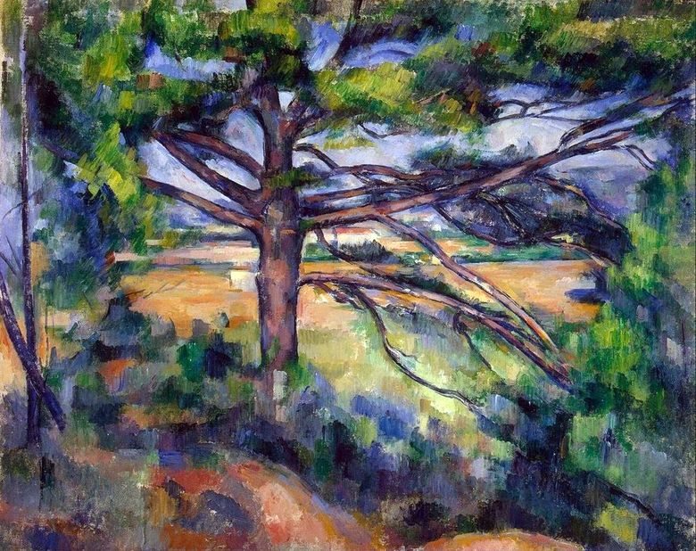 A kiállításon egymás mellett szereplő festmények láthatóvá teszik a vizuális és szellemi kapcsolódási pontokat Cezanne és más alkotók között. Ilyen fontos pont az, amikor Monet Virágzó szilvafák című festményét látjuk Cezanne A nagy fenyője mellett. Már egyetlen képpár is elegendő ahhoz, hogy megértsük, az utóbbi mi módon távolodott el az impresszionizmustól. Hogy míg Monet inkább a kanti értelemben vett szépet kereste a tájban, addig Cezanne a fenségest ábrázolta. A vad színfoltok, a párhuzamos ecsetvonások, a dinamikus képépítés expresszívvé, féktelenné teszi A nagy fenyőt.