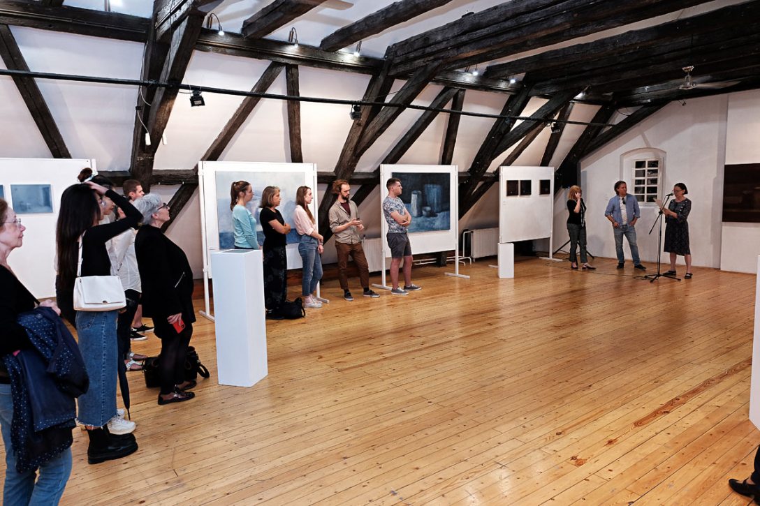 Nyugalomra intenek, arra inspirálnak, hogy merüljünk el a kontúr és éles vonal nélküli kompozíciók árnyékos, lebegő terében. Az olajjal, akvarellel, rézkarccal vagy éppen szénnel készült alkotások ódon, időtlen hangulatot árasztanak, felületmegmunkálásuk egy, a tradicionális technikákat jól ismerő és a matériával folyamatosan kísérletező alkotó kezéről árulkodnak.