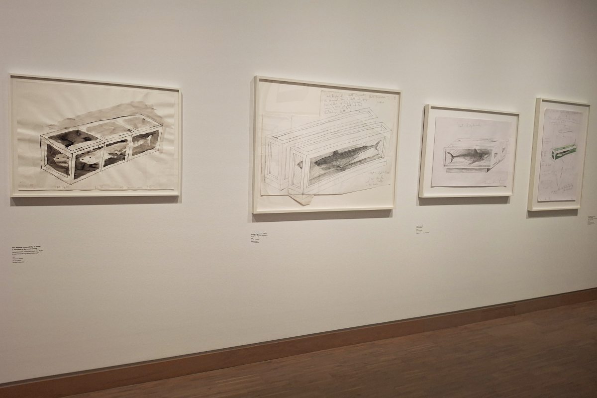 E tér fontos elemei A halál fizikai lehetetlensége egy élő ember elméjében című installáció vázlatai, rajzi előképei. A mű a kortárs művészet egyik legismertebb alkotása, ez hozta meg Hirst számára a világhírt, most pedig láthatóvá válik, hogy a művész már évekkel korábban elkezdett foglalkozni ezzel a témával: az épp kéznél levő papírfelületen alakult az ötlet. A rajzok megmutatják, hogyan forrt ki. A meg nem valósult vázlatok különösen beszédesek, mert feltárják, hogy Hirst milyen széles spektrumon gondolkodott a motívumról.