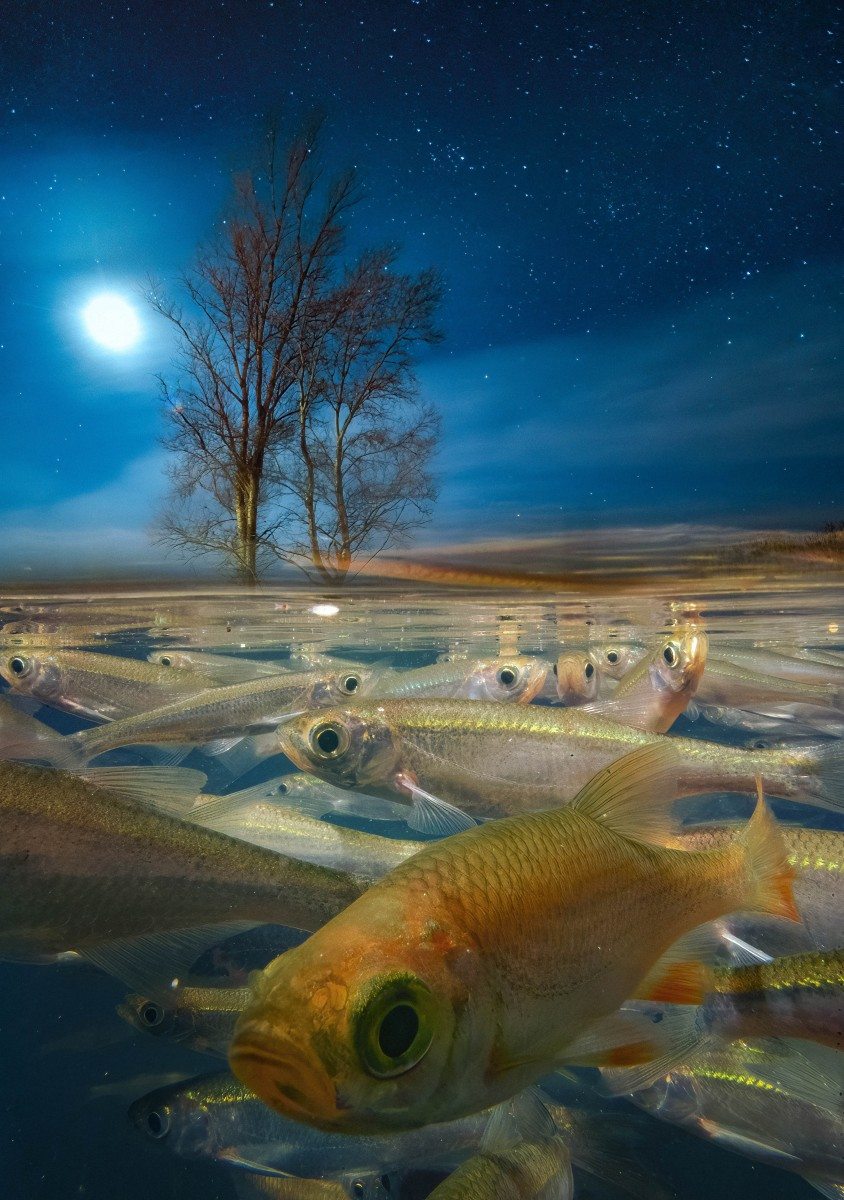 A fotós vízpótlás után a soltvadkerti tóban egy víz alatt elhelyezett kamerával készítette éjjel A halak csillagképe című fotóját, amellyel kiérdemelte Az év természetfotója elismerést.