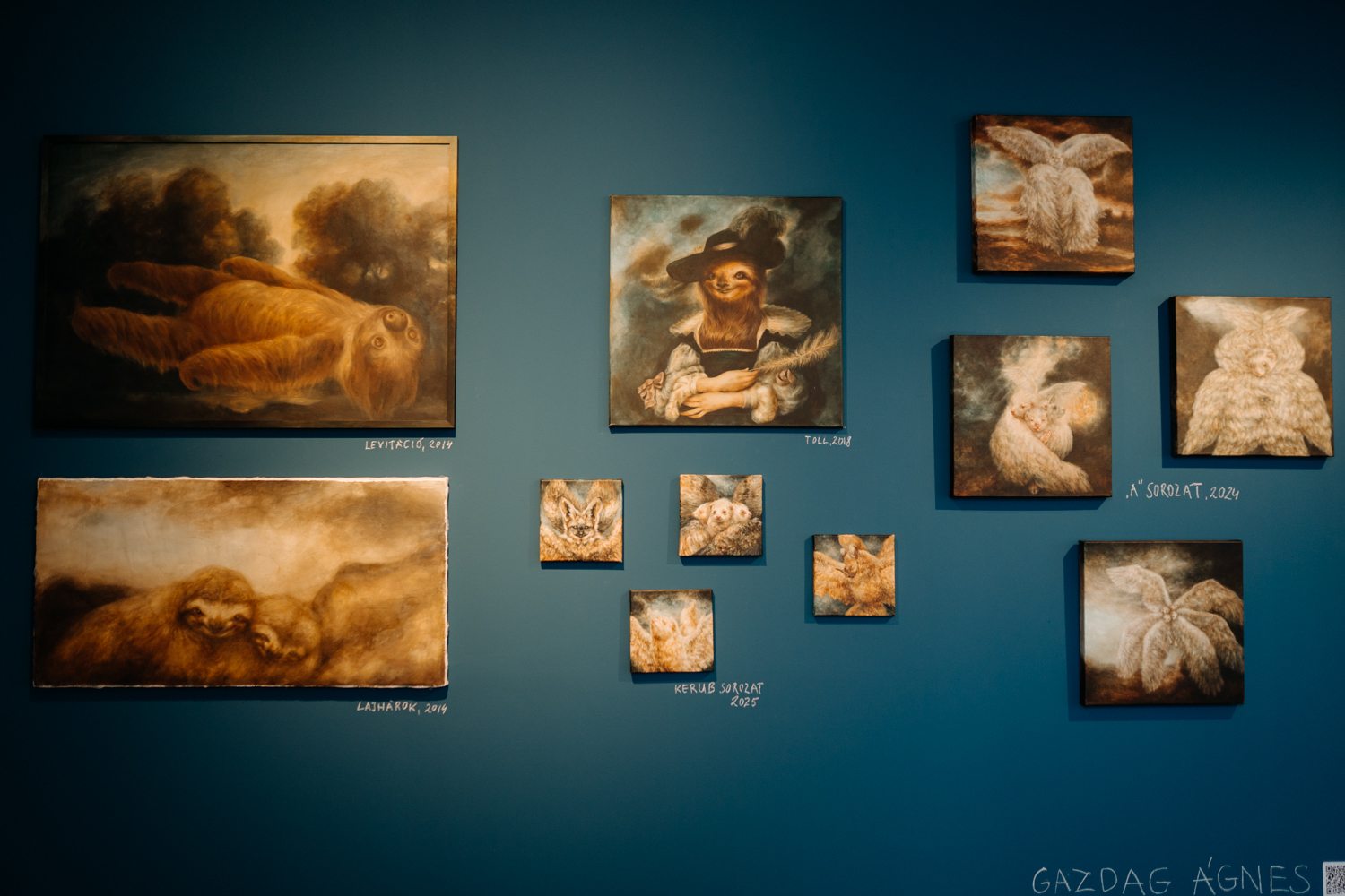 Karácsonyi „horror rokokó” enteriőrjének groteszk hangütése Gazdag Ágnes munkáiban folytatódik. Ezekben a festményekben szintén a klasszikus hagyomány íródik újra a kortárs irónia nyelvén. A kis méretű emlősök színpadias jelenetekben, elegáns kosztümökbe öltöztetve jelennek meg, így a képek egyszerre hatnak tisztelgésnek és finom fricskának. A régmúlt ikonográfiája és a kortárs popkulturális érzékenység vészjósló, mégis szórakoztató módon keveredik, a cuki és a groteszk egymásba csúszása pedig folyamatos feszültséget teremt.