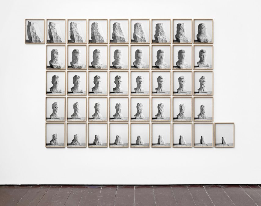 Igen, a Variációk az Énre teszi fel a legdirektebb módon a személyes identitás kérdését, vagyis azt, milyen kritériumok szükségesek ahhoz, hogy egy élő a folyamatos változás ellenére egy adott időn keresztül azonos maradhasson magával. A kiinduló sziklából Ámmer Gergő szobrász barátom faragta ki a Wittgensteint ábrázoló portrét, majd alakította vissza a szikla amorf formájára. A munka egyes fázisait gondosan megterveztük, dokumentáltuk, az utolsó képen látható kis sziklát, az összes lebontott, levert carrarai márványrészecskét és a felszabaduló port összegyűjtöttük. A kiállításon mindez látható. Elvileg az egész munkát össze lehetne rakni fordított sorrendben.