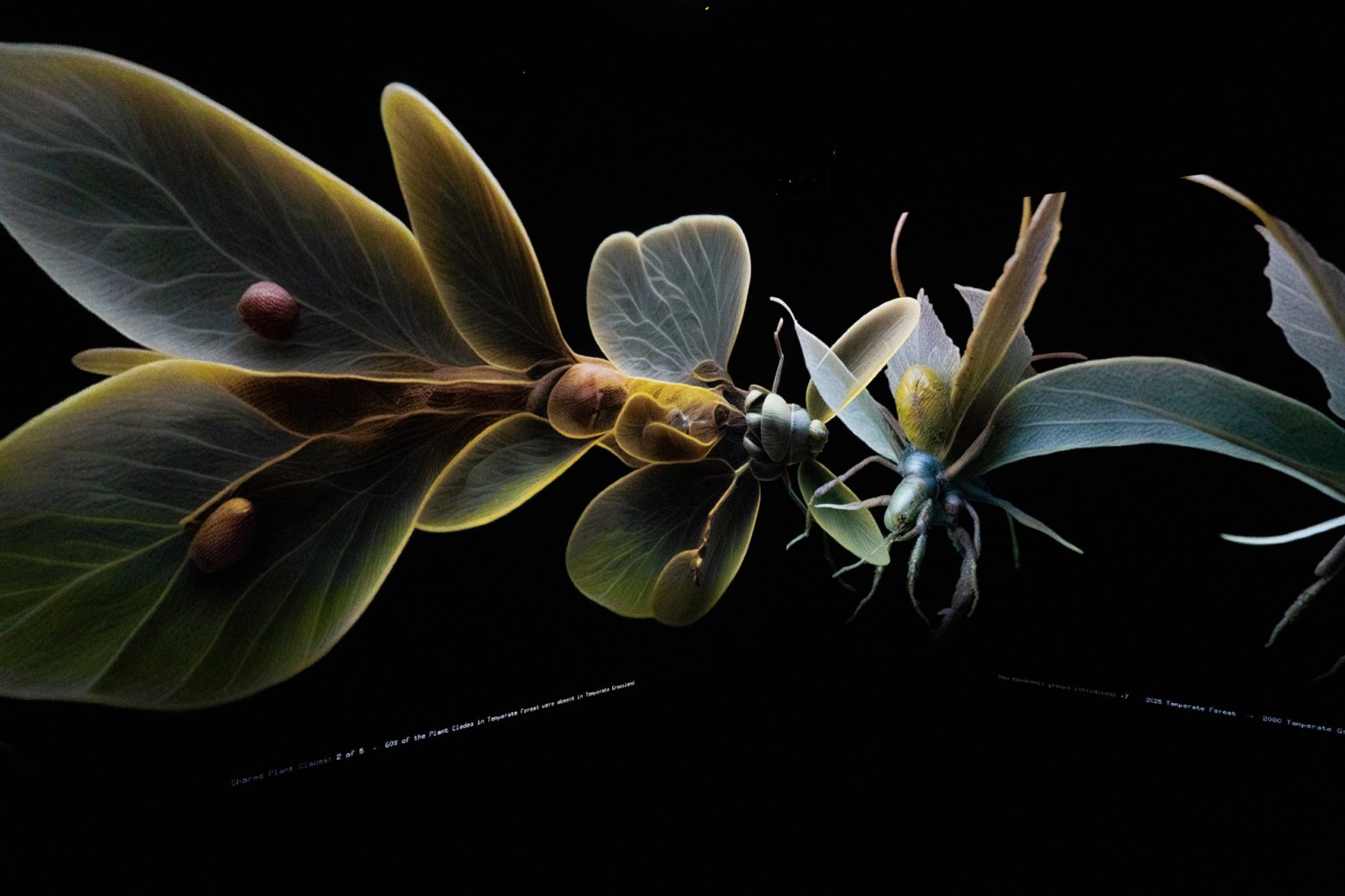 A LAM-ban pedig nagy kedvenceim Mat Collishaw Tensor Mag és a fuse* kollektíva Mimikri című művei, amelyek vizuálisan és tematikailag is párbeszédben állnak egymással. Mindkettő az emberi beavatkozás, a mesterséges intelligencia és a természet viszonyát vizsgálja. A fény- és hangalapú installációk egyszerre gyönyörűek és nyugtalanítók: esztétikai élményt nyújtanak, de emlékeztetnek arra is, hogy az ember által létrehozott új életformák a túlélés és a pusztulás határán egyensúlyoznak.
