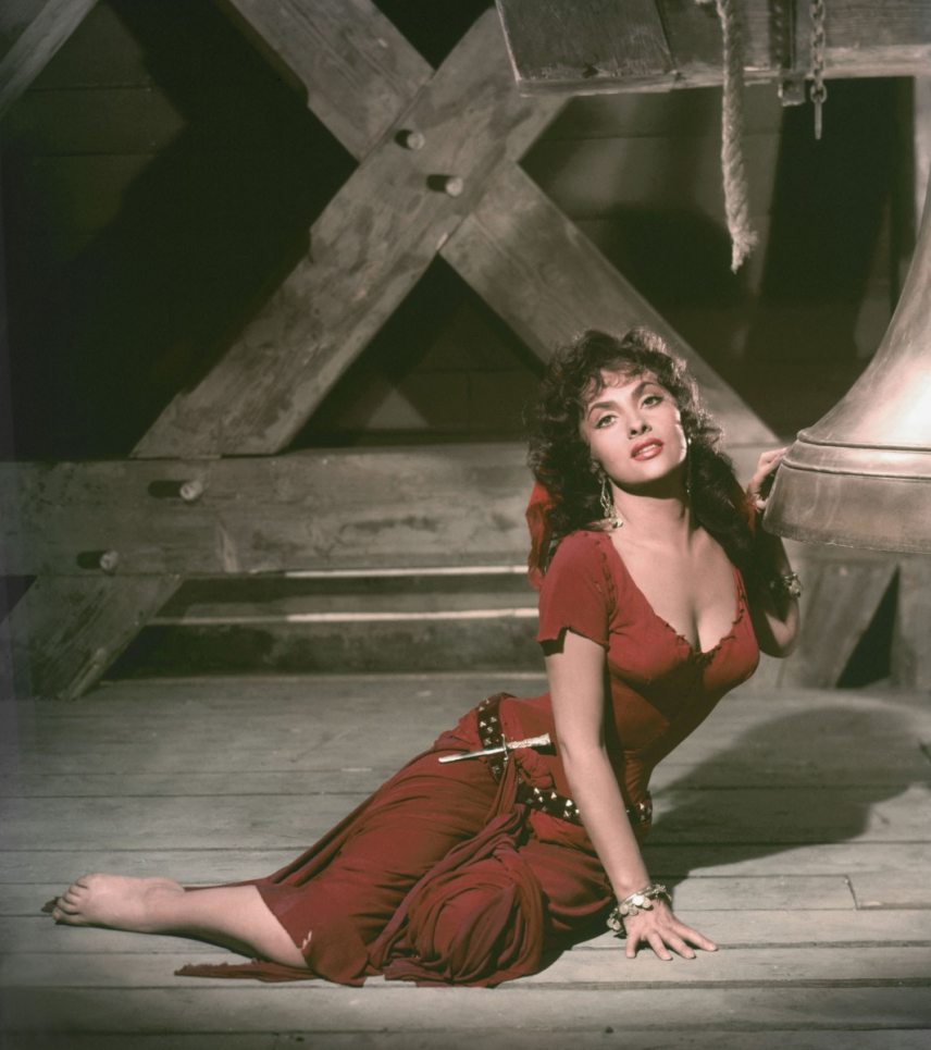 Lollobrigida két ízben is játszott az Alberto Moravia regényéből készült A római lányban: 1954-ben, 27 évesen a naiv utcalányt, 60 esztendősen az édesanyját alakította. Igazi nemzetközi karrierje 1955-ben jelképesen A világ legszebb asszonya című produkcióval indult, egy évvel később a cirkusz világába elkalauzoló Trapézban artistalányként Tony Curtis és Burt Lancaster partnere volt, majd a Victor Hugo regénye nyomán készült A párizsi Notre-Dame tragikus sorsú Esmeraldáját személyesítette meg.