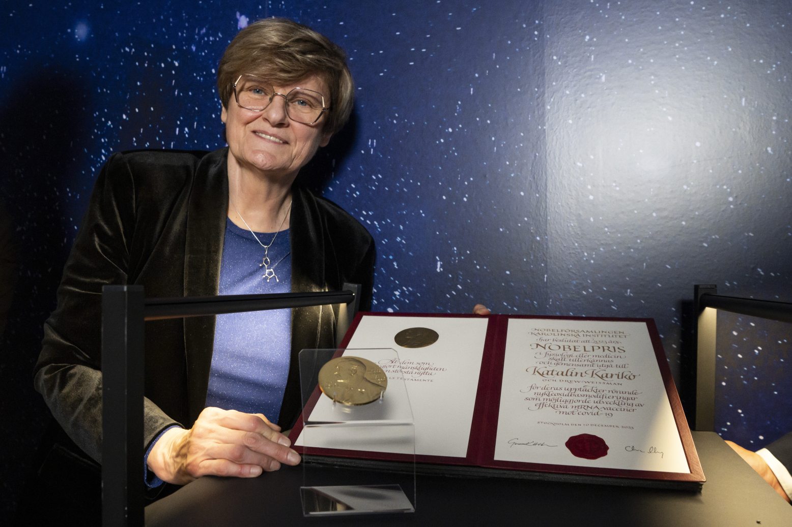 Karikó 2023. október 2-án kapta meg a Drew Weissmannal megosztott orvosi-élettani Nobel-díjat, amit a módosított nukleozidokkal kapcsolatos felfedezéseikért ítélték oda, amelyek lehetővé tették a Covid-19 ellen hatékony mRNS-alapú vakcinák kifejlesztését. Ezáltal tíz magyar tudós és alkotó után ő szerezte meg a tizenegyedik magyar Nobel-díjat, egyben ő lett az első magyar Nobel-díjas nő. A díjjal járó több mint félmillió dollárt egykori alma materének, a Szegedi Tudományegyetemnek adományozta. Nem mellesleg: a Nobel-díj mellett több mint 130 magyar és nemzetközi díjat és kitüntetést kapott a biokémia területén végzett úttörő és világviszonylatban is jelentős munkásságáért.