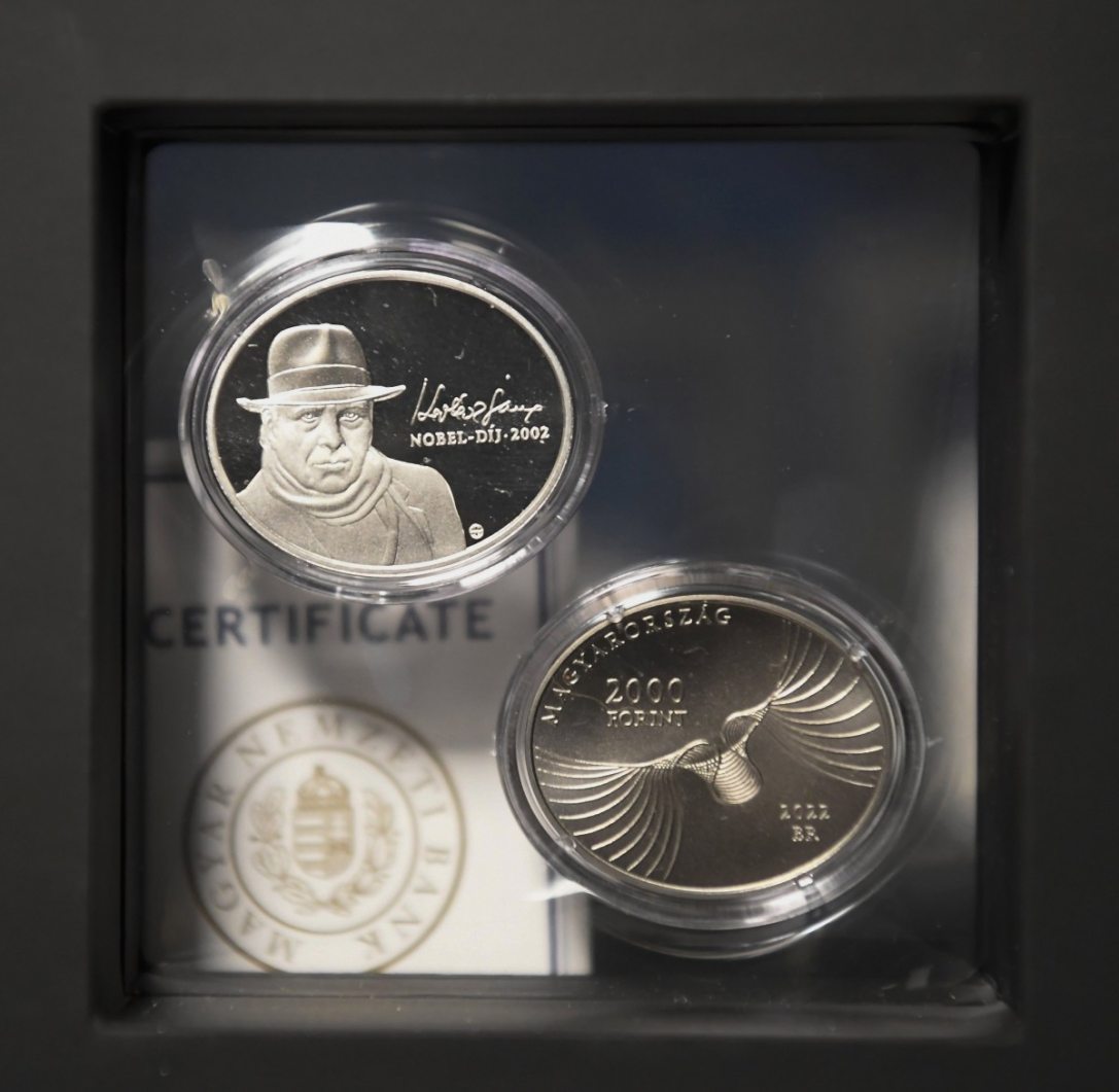 Kertész Imre tiszteletére – irodalmi Nobel-díja átvételének 20. évfordulója alkalmából – 7500 forint névértékű ezüst és 2000 forint névértékű színesfém emlékérmét bocsátott ki a számos díjjal kitüntetett író, műfordító születésének évfordulóján, kedden a Magyar Nemzeti Bank (MNB).