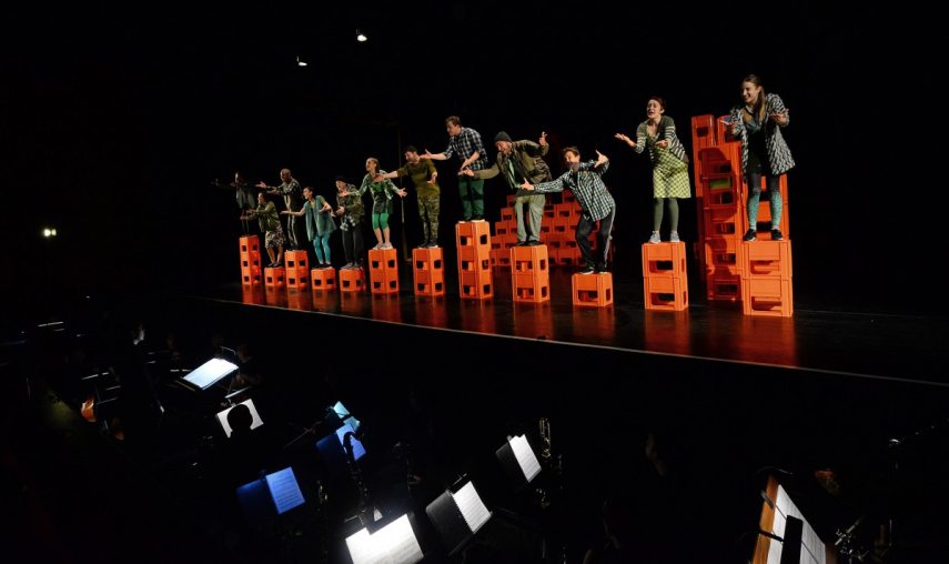 Horváth Csaba: Mindig kérdés, hogy értelmezhető-e önállóan egy színpadi rendezés vagy koreográfia, ami alapvetően a zenés színház műfaját szolgálja, illetve egy zenemű, ami a színpadi akciót szolgálja. Meggyőződésem, hogy ezek egymásra támaszkodnak, és a jó fúzió, ha egyiket se gondoljuk önálló műalkotásnak vagy kompozíciónak, ha – kis túlzással – egyik a másik nélkül nem életképes. Ezzel természetesen nem akarom degradálni se Balázs munkáját, se a magamét, se a színészekét, de ebben az előadásban a színészek által olyan minőségben szólal meg a zene, olyan érvényességet adnak neki, amitől a zene a színpad törvényei szerint kezd működni. Fontos egyébként hozzátenni, hogy a zenés színház ebben az esetben nem operettet, musicalt vagy operát jelent, hanem a német színházi hagyományban erősen jelen levő Musiktheatert.