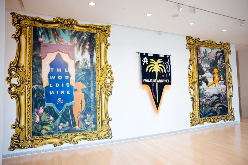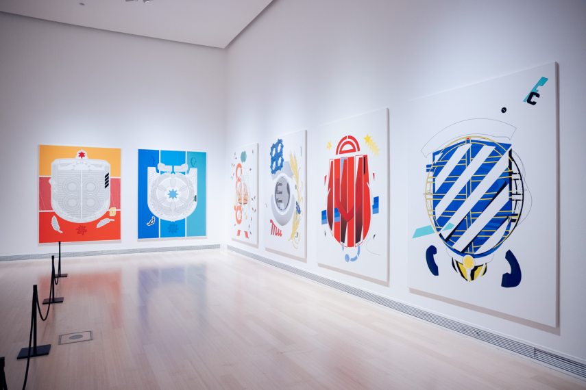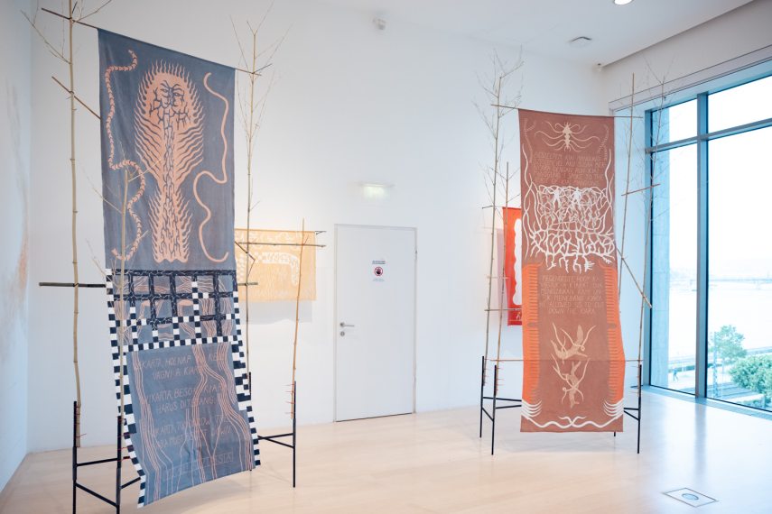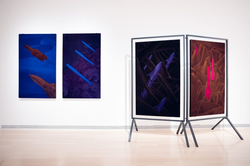 Varga Ádám egy absztrakt és utópisztikus világ címereit festi, fiktív történelmet generálva, míg Petrányi Luca a kolonializmus hatását keresve a történelem elfeledett szereplőinek állít emléket. Lőrincz Áron grandiózus installációja a pillanatnyi szabályok alól való felszabadulást és a konformizmus elleni lázadást hirdeti.