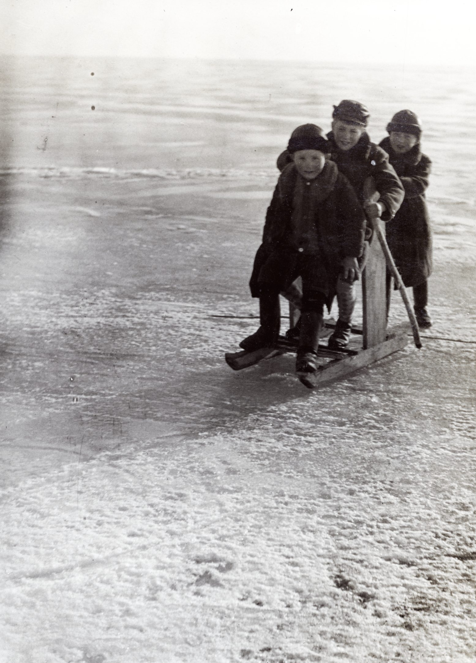 Nyitókép: Fakutyázók a befagyott Balaton jegén a Székesfővárosi tisztviselők üdülőtelepe (később Honvéd üdülő) előtt Balatonkenesén, 1934-ben. Fotó: Bor Dezső / Fortepan
