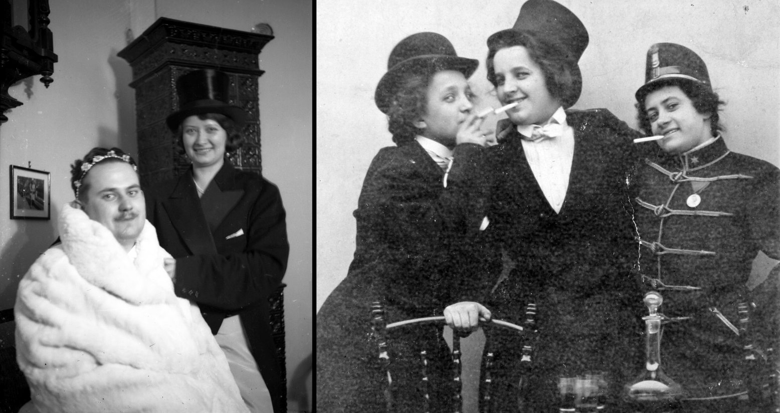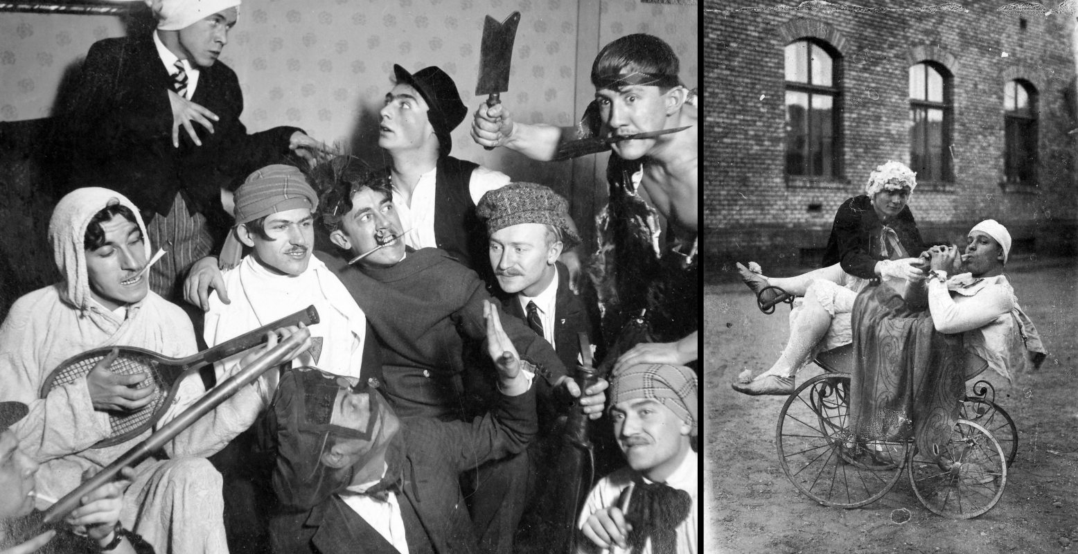 Népszerű téma a privát fotósok körében a tréfálkozás, a bohóckodás, a beöltözés, és szerencsére sokan exponáltak is, amint a barátjuk menyecskének öltözött, a feleségük tölcsért húzott a fejére, vagy apa és anya ruhát cserélt. Álarcok és maskarák egy évszázad fotóin farsang idején és azon túl.