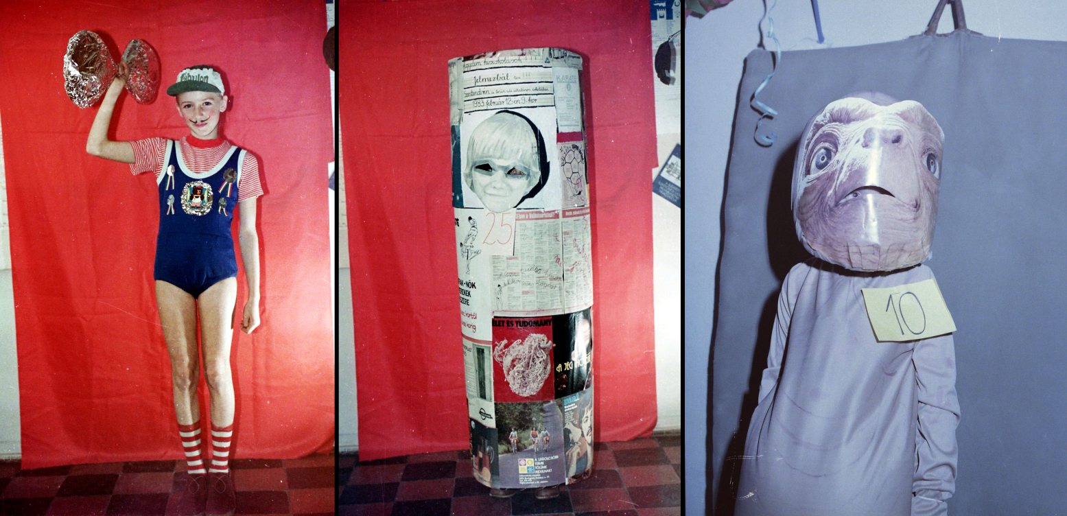 A beöltözés a gyerekeknek hatalmas élmény. Az iskolai rendezvényre a jelmezek jellemzően otthon készültek, és itt is az együtt tervezés, szabás, ragasztás volt az igazi öröm, mellette eltörpült az a pár perc csillogás, amikor körbejártunk az iskolai bemutatón. Pláne, ha zsűriztek is bennünket – pedagógusok sokat küzdöttek azért, hogy a jelmezbál a vidámság ünnepe és ne verseny legyen, de a korszellem ezt aligha tette lehetővé. Ami másra is hatással volt: a ’60-as – ’70-es években például minden kisfiú űrhajós vagy űrhajó akart lenni, az anyukák nem győzték vásárolni az alufóliát, és úgy tartották, jó, ha az űrhajós egy elemlámpát is tart a kezében, amit időnként bekapcsol.