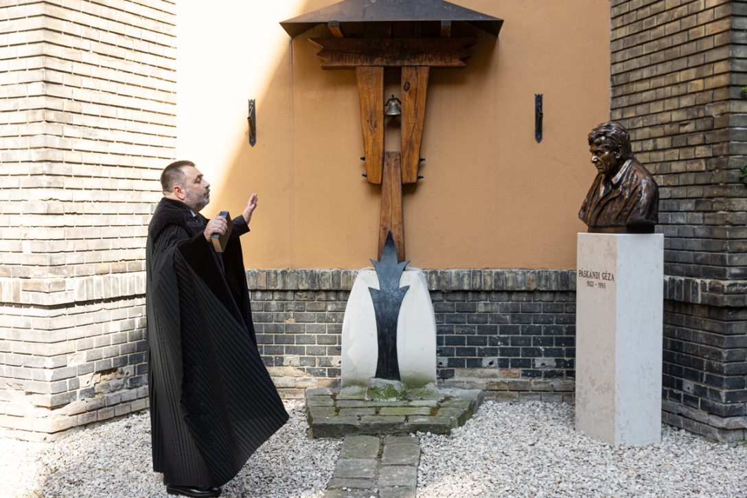 Demeter Szilárd, a Petőfi Irodalmi Múzeum főigazgatója egy jegyzőkönyvből olvasta fel azt a részt, melyben Páskándi Gézát nyilvános bujtogatás vádjával hat év börtönbüntetésre ítélte a romániai kommunista diktatúra apparátusa. Ám, ahogyan életrajzírója fogalmazott: „Páskándi bevonult sziporkázóan tehetséges, induló költőként a börtönbe, és kijött onnan mint felforgató abszurddráma-író.” A főigazgató beszédét egy Páskándi-idézettel zárta: „Iparkodtam hát nem élősködője, de hasznos együttlétezője lenni a históriának. Nem kullancs az idő (türelmes!?) birkájának, vad bivalyának bőre alatt, hanem olyan éles csőrű apró madár, amely az állat hátán dolgosan csipegeti a tetveket”.