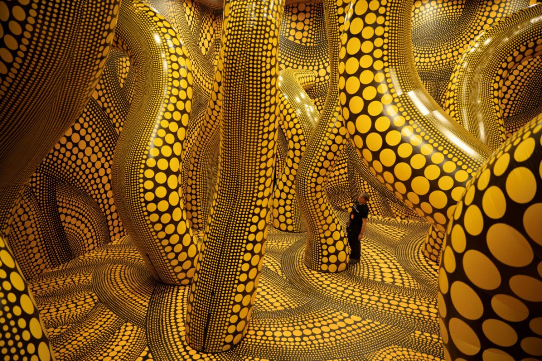 A híres japán művésznő legnagyobb kiállítását nyitották meg a manchesteri világeseményen. A tárlat több mint tíz méteres műveket is felvonultat, melyeknek jellegzetes pöttyös mintázatával az alkotó pszichedelikus, földöntúli tereket teremt meg. A Manchester’s Finest című lap szerint a kiállítás a Factory International művészeti szervezet új épületének megnyitójára készült, amely a későbbiekben a belső terek részét fogja képezni.