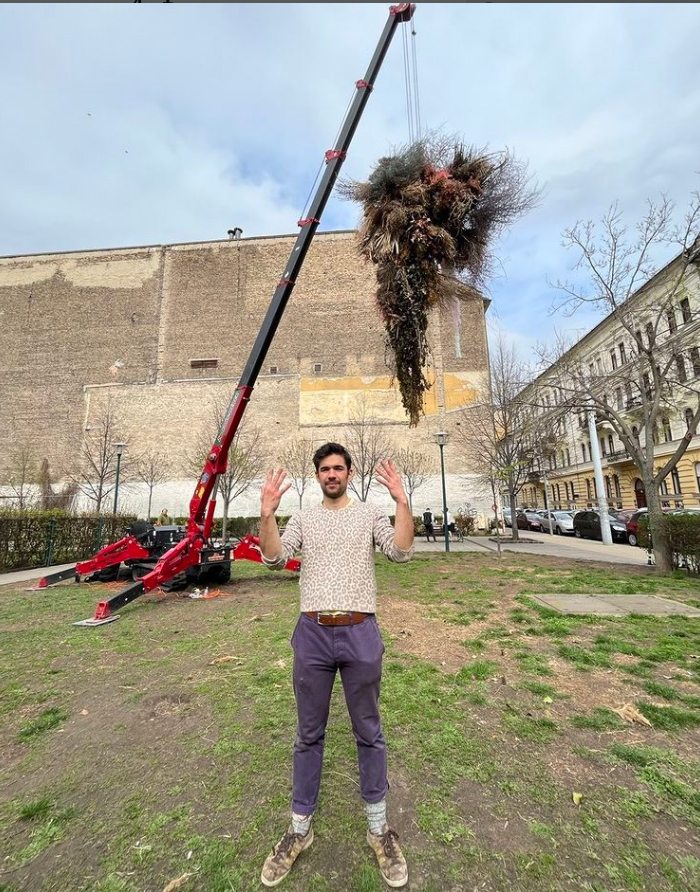 Egy ideje azt tapasztalom, hogy amikor az alkotói praxisomban ezt a két végletet egymás mellé teszem, akkor furcsa feszültség alakul ki, és fel tudom borítani a sztereotipikus nézői megközelítéseket. Ha a virágkötészet női, dekoratív jellege felől közelítenek a munkákhoz, akkor előrántom a szobrászkártyát, ha pedig a szobrászat felől, akkor a virágrendezés könnyedségét hozom be. A virágkötészetet és a szobrászatot azonban ekkora léptékben még soha nem kötöttem össze, így a pályám szempontjából is nagy áttörés ez a projekt.