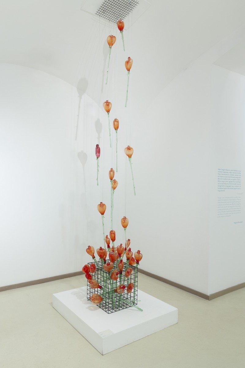 A hagyományos hutaüveggel Smetana Ágnes dolgozik a kiállítók közül. Ehhez speciális környezetet kell biztosítani, ahol ezerháromszáz fokon alakíthatja a művész a folyékony üveget. Smetana Bárdudvarnokon készíti fúvott üvegeit. (A település, ahol 1990 óta működik hazai üvegművészeti alkotótelep, azért is fontos hely, mert évente nagy nemzetközi szimpóziumoknak ad helyet.) Az üveg színezésének, formázásának technikáját Smetana is hosszú évek alatt kristályosította ki. „Plasztikáit a természet, annak közvetlen szépsége és látványa, például a kerítés tövében szelíden növekedő virágok inspirálják. Korábban készült szívvirágai a szentendrei tárlatban újraértelmeződtek: az installáció a fölfelé szálló üvegszívekkel a Lájkolom címet kapta, és egy életstílust modellez.”