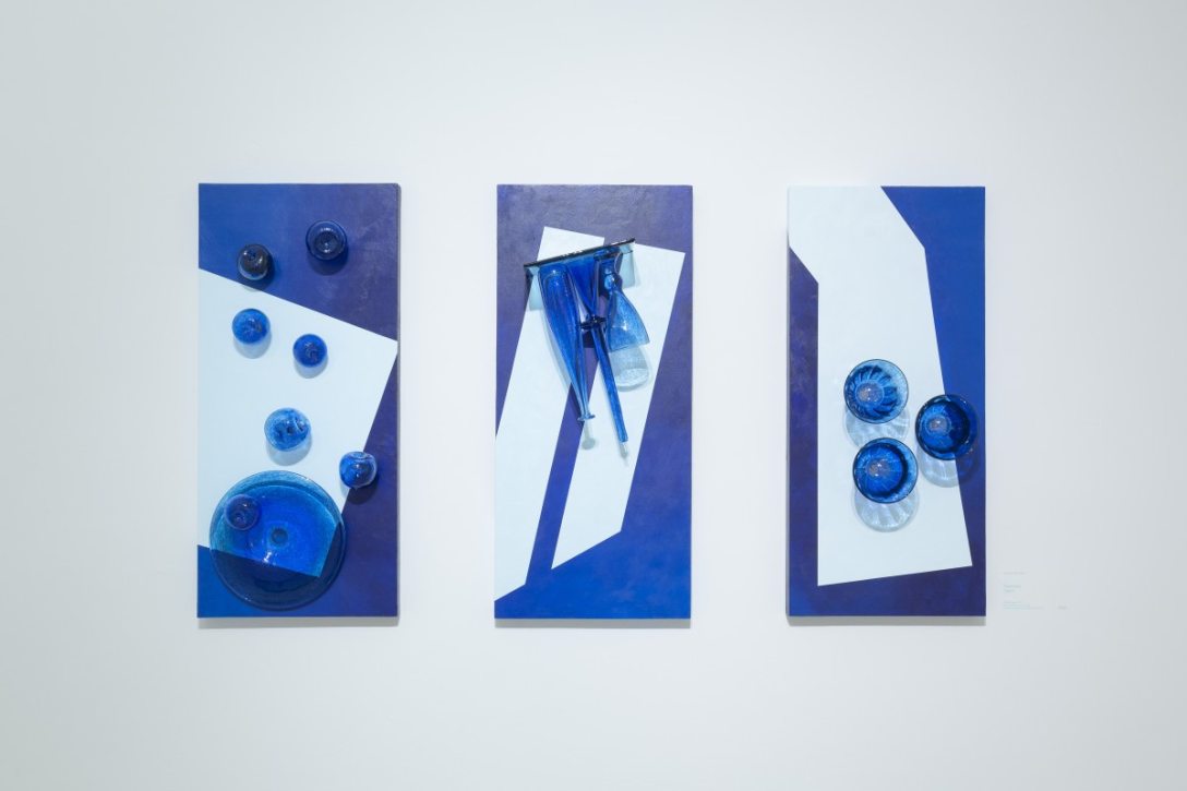 A Tápiószecsőn élő Hegyvári Bernadett saját üveghutával dolgozik, így teljes függetlenséget élvez. Kifejezetten erre a kiállításra készült Triptichonja a fent-lent játék bizonytalanságát, a nézőpontváltás lehetőségét villantja fel. „Fúvott üvegből készült tárgyait hol felül-, hol alulnézetből látjuk, a csendéletegyüttesek egy lakótér különböző egységeit idézik megváltoztatott nézőpontból. A szokatlan megközelítés azt sugallja, hogy a néző lebeg a tárgyak között, és váltogatja a nézőpontokat.”