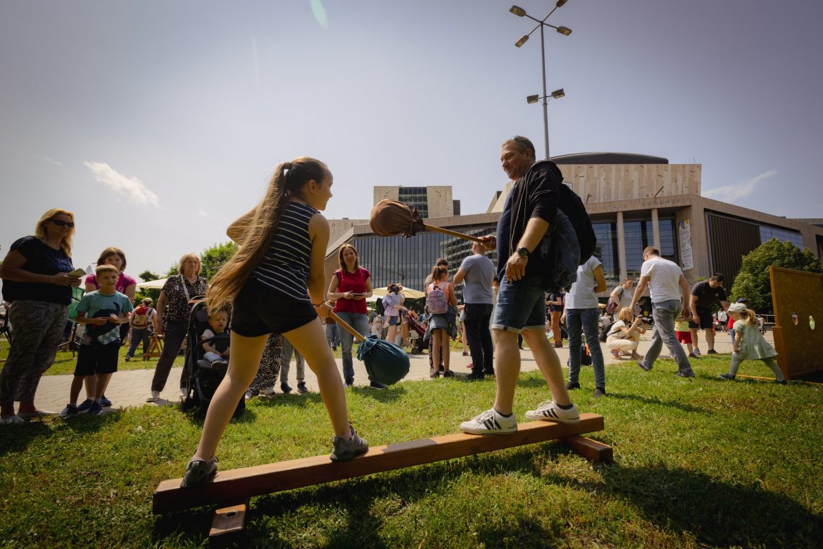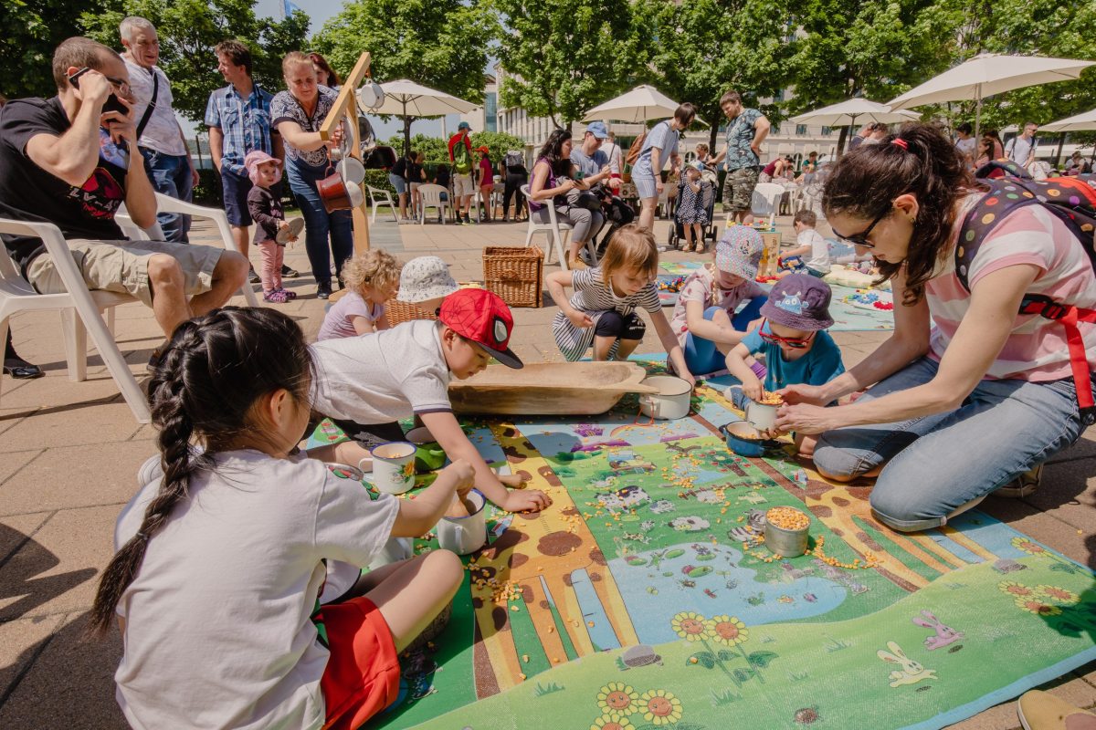 A Müpa előtti téren idén is helyet kapnak a népszerű népi játékok, mint a csirkepofozó, a békaugrató és a frászkarika, de számos ügyességi, logikai és érzékenyítő játékban is kipróbálhatják magukat a gyerekek és vállalkozó kedvű szüleik is. Lesz meseliget, babasziget, kemencés parasztudvar, Sárkányvár és Hétpróba, de kreatív és zenei fejlesztő foglalkozások, hangszerkészítő műhely és hangszersimogató, sőt balerinavarázs is várja a kicsiket és nagyokat.