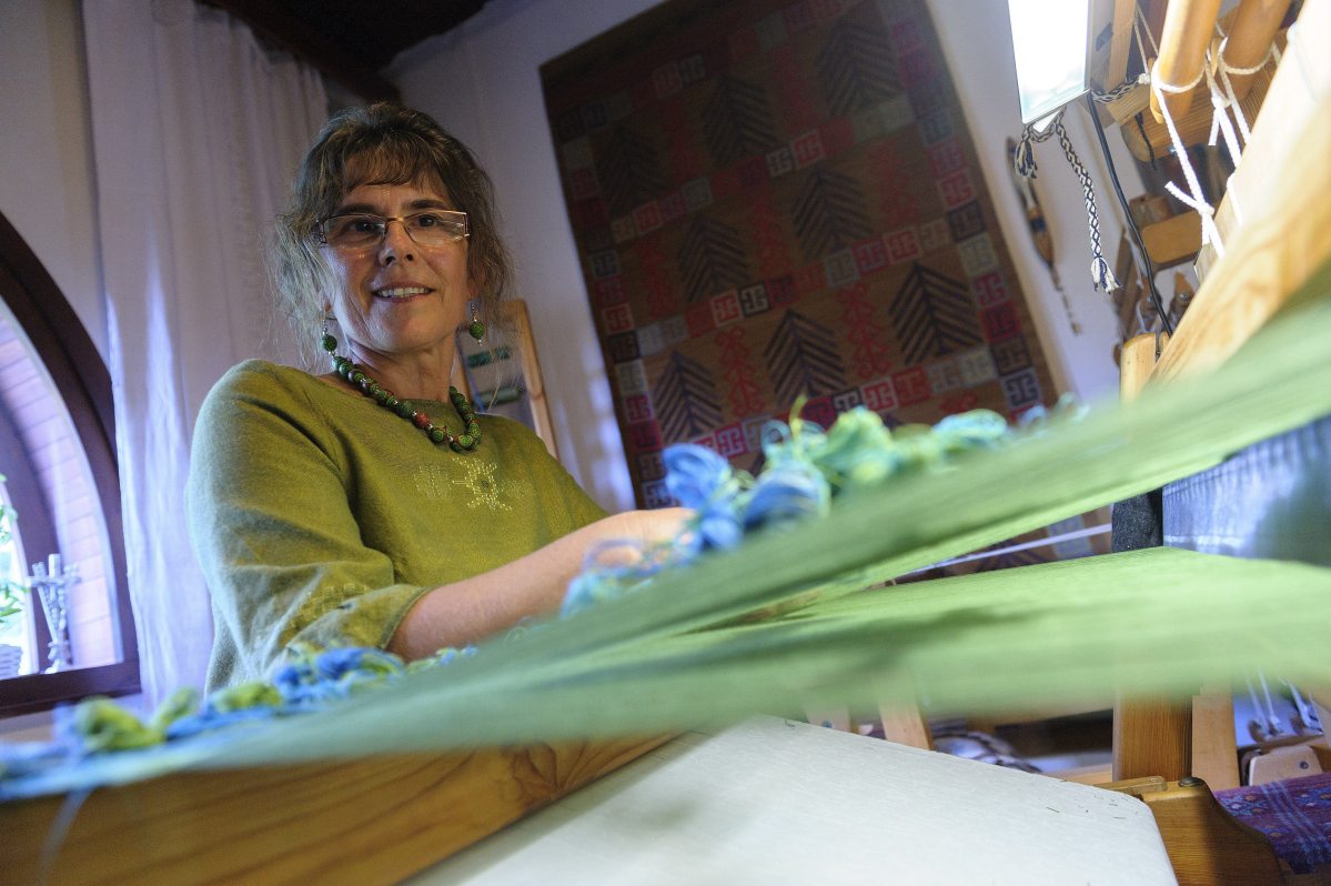 Témáimat a textilek felmelegítik. Érzékelhetően otthonosságot teremtenek itt, a kiállítótérben is. Az ősi és egyetemes jelképekkel mintázott textileken jól olvasható szimbólum például a Nap, a Föld, a Hold, a csillagok, a tűz és a víz vagy a virág… Feleségem továbbviszi, tanítványainak is továbbadja a jelképekbe sűrített gondolatokat, amelyek őseink hite szerint teremtőerővel rendelkeznek. A magyar hagyomány népünk évezredek óta bevált tapasztalatainak gyűjteménye. Őseink legszentebb jelképei, színei szövődnek bele ezekbe a textilekbe, így adnak erőt, gyógyulást, egészséget a viselőjüknek. Ahogy most rátekintek a kiállításra, a textil, a kő, a fa és a vas harmóniáját látom. Segítik egymást.