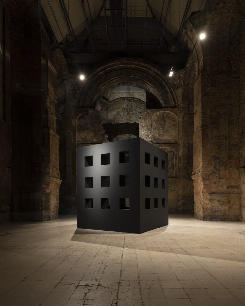 Rendeltetése meghatározhatatlan, emiatt zavart kelt bennünk. Az installáció formai és szellemi előképe Aldo Rossi 1971-es, kocka alakú csontháza (osszáriuma), ami a melankolikus építészet fontos alkotása volt. Gerhes installációja tehát temetkezési helyszínt idéz, így alkalmat ad a látogatónak arra, hogy elmerengjen a mulandóságán. A hatalmas tömb a tudástárolás hagyományos helyszíneit is megidézi: könyvespolcként, könyvtárként, múzeumként is értelmezhető. Ezek a terek korábban a tudás templomai, a nagy elbeszélés helyszínei voltak, ahol a teleologikus narratívát a felszínre lehetett hozni. Ebben az installációban azonban csupán egyetlen könyv szerepel, Gerhes Gábor öt éve készülő Atlasa.